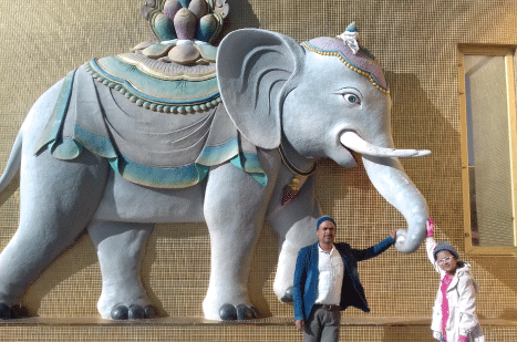 আইরিন কিছুটা উঠে সিঁড়িতে বসে পড়লো। আমাদের বললো, তোমরা যাও, আমি আর উঠতে পারবো না। আইরিন হাঁপাচ্ছে। সিঁড়ি দেখতে অপূর্ব কিন্তু খাড়া হওয়ার কারণে উঠতে কষ্ট হয়। আমি বিশ্রাম নিয়ে নিয়ে বাচ্চাদেরসহ উঠে পড়লাম। পিতলের তৈরি চমৎকার বুদ্ধমূর্তি। বিশাল বেদি ঘিরে অসাধারণ সব ছবি। হাতি, ময়ূর ও বিভিন্ন দেবদেবী ছাড়াও পরীর নৃত্যরত মূর্তি। এখান থেকে তাকালে সমস্ত থিম্পু শহর দেখা যায়। চারপাশ দেখে আমাদের উঠার কষ্ট দূর হয়ে গেল। কিছুক্ষণ পর সিঁড়িতে আইরিনের মাথা দেখা গেল। স্বনন সেটা লক্ষ্য করে চিৎকার করে বললো: